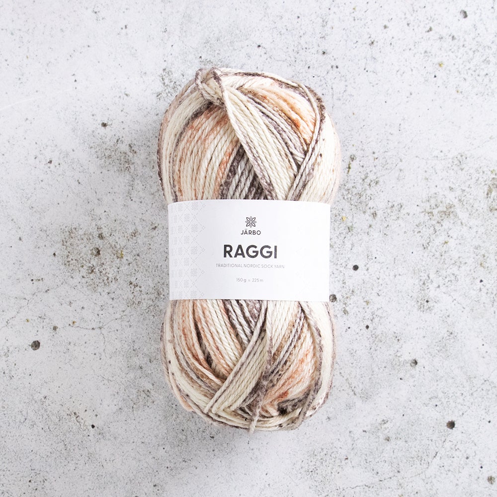 Raggi on sukkalankojen esi-isä ja Järbon ylpeys, joka kehrättiin ensimmäistä kertaa Järbon kehräämöllä. Superwash-käsitellyn villan sekä polyamidin sekoitus tekee langasta kulutusta kestävän ja siksi se sopii erityisen hyvin sukkiin. Raggi lämmittää ihanasti myös talvipaidoissa, pipoissa, lapasissa ja huiveissa. Klassinen sukkalanka.