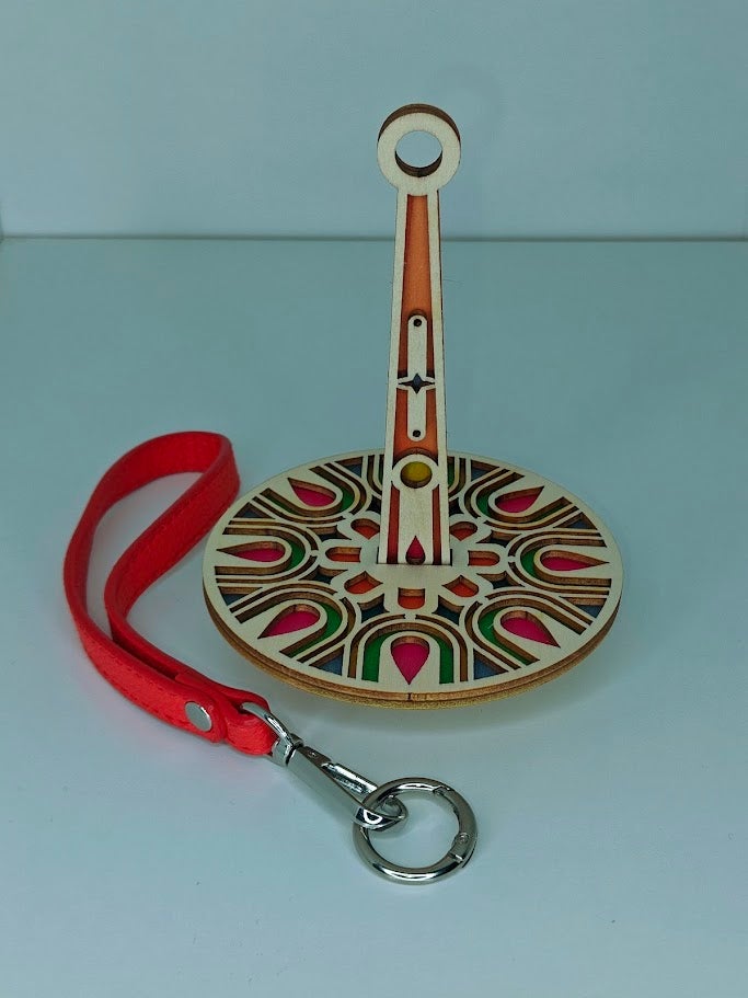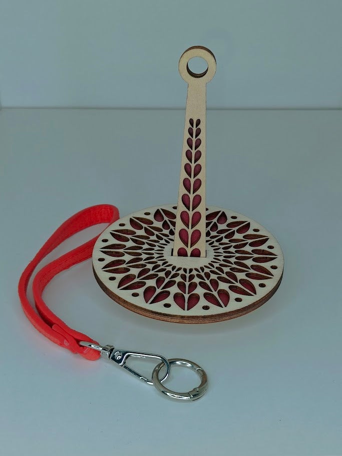 Ranteessa kannettava lankateline johon mahtuu 25g, 50g ja 100g laakea lankakerä tai -kakku.
