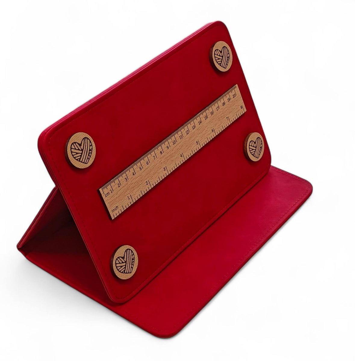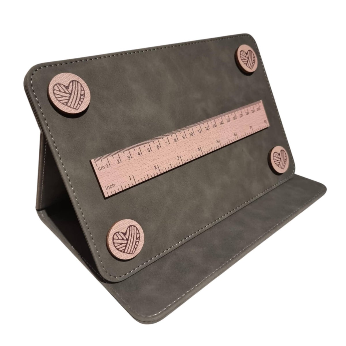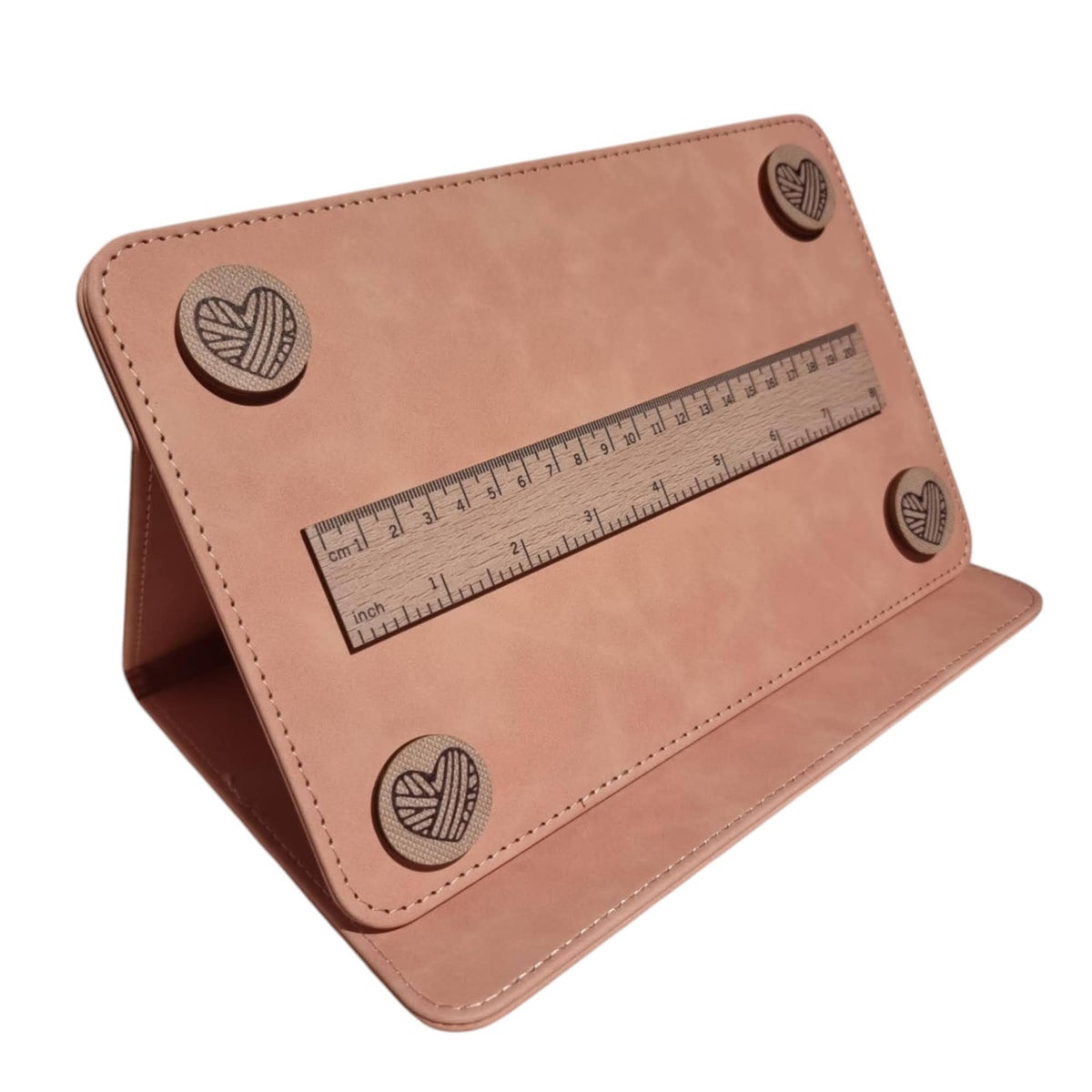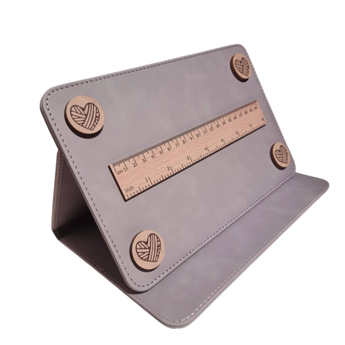 Soveltuu A5 kokoiselle kuvio-ohjeelle. 20cm:n magneettimitta ohjeen seuraamiseen ja neljä sydänmagneettia pitämään ohjepaperi paikoillaan. Näppärän kokoinen kuljettaa mukana neuleprojektikassissa.