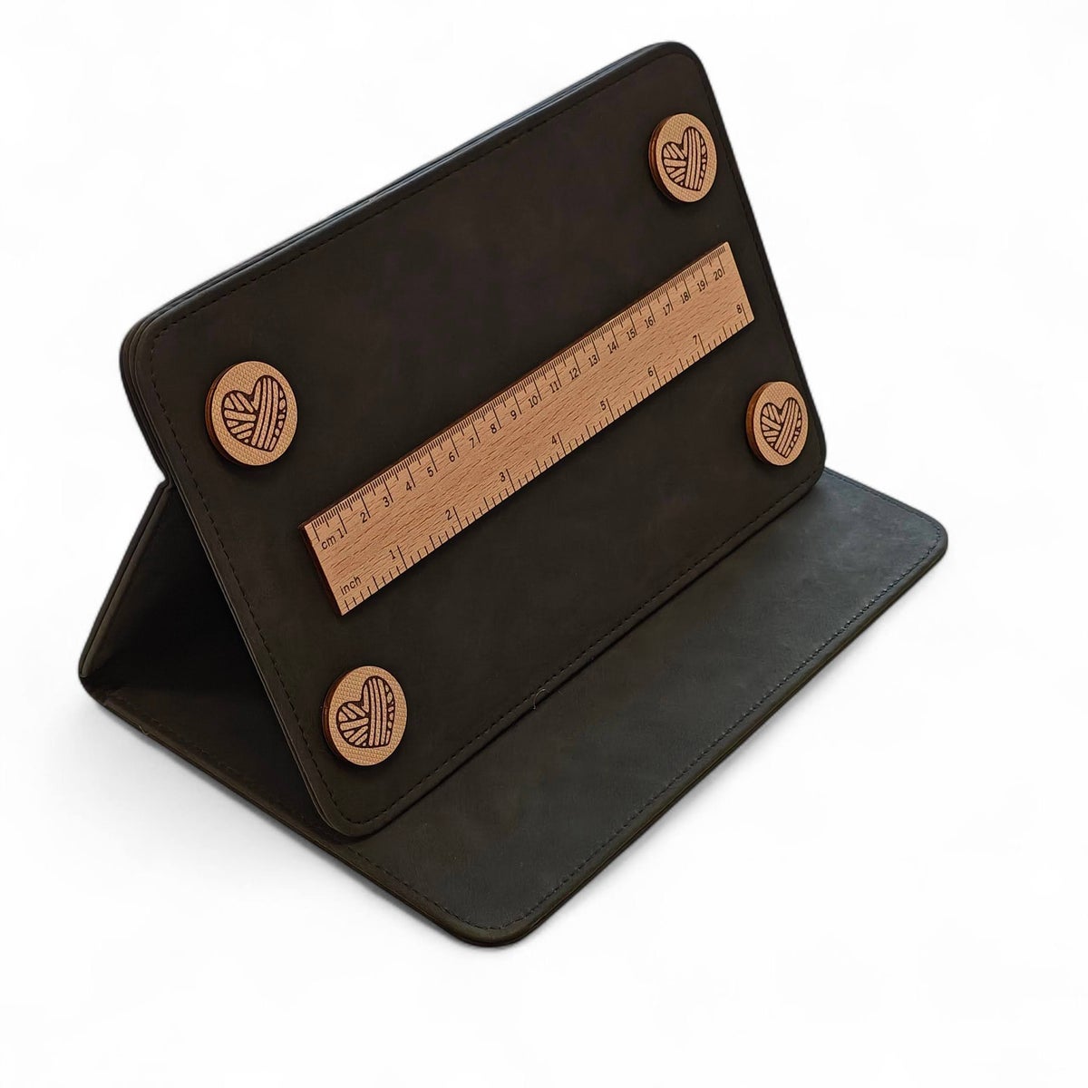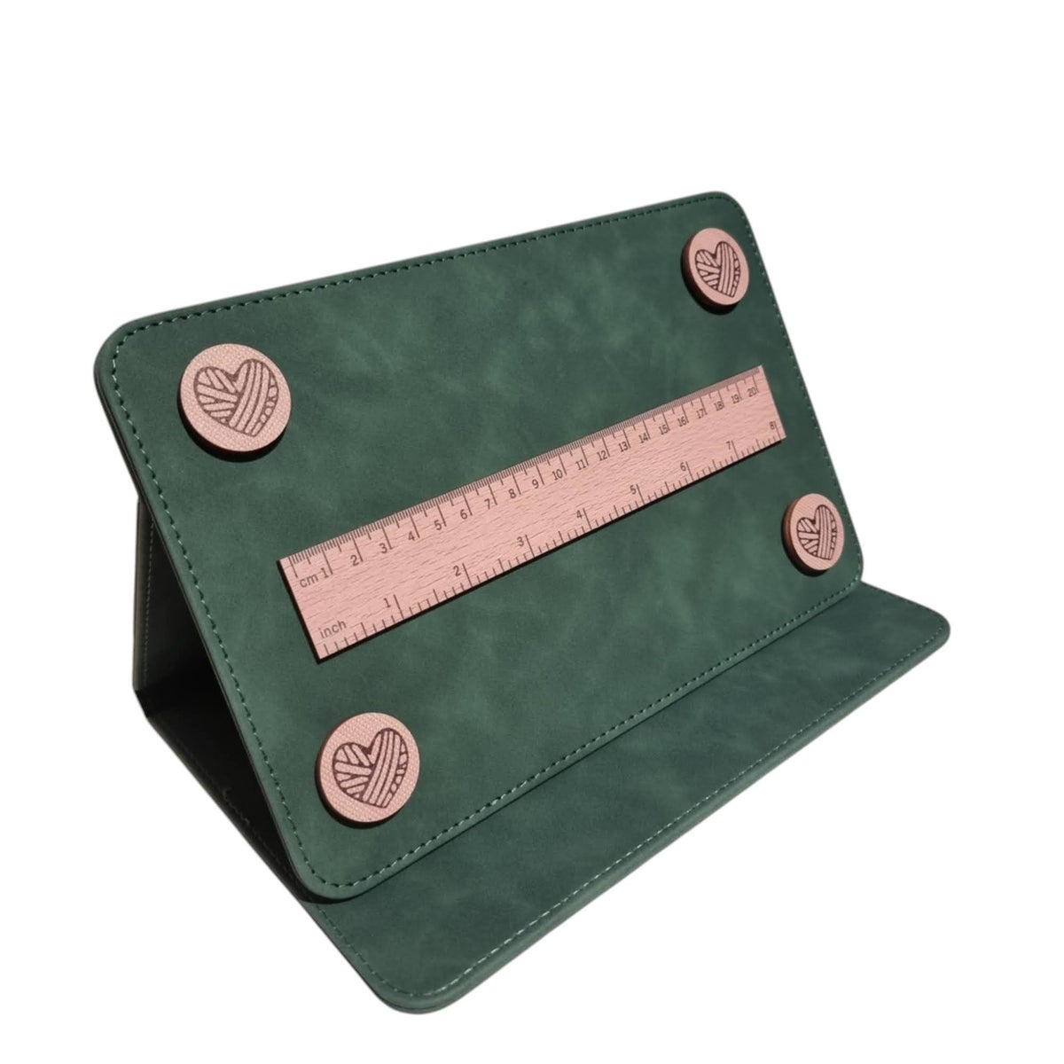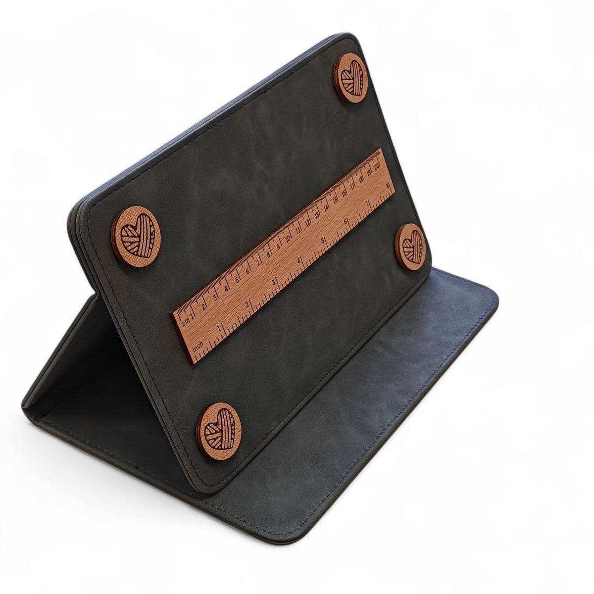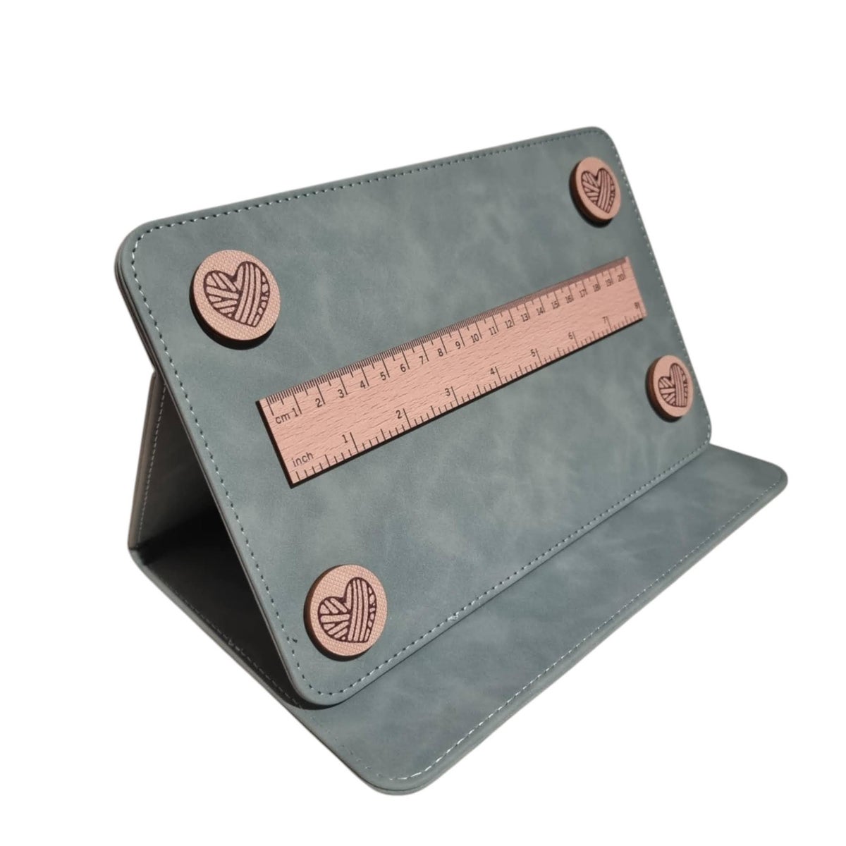 Soveltuu A5 kokoiselle kuvio-ohjeelle. 20cm:n magneettimitta ohjeen seuraamiseen ja neljä sydänmagneettia pitämään ohjepaperi paikoillaan. Näppärän kokoinen kuljettaa mukana neuleprojektikassissa.