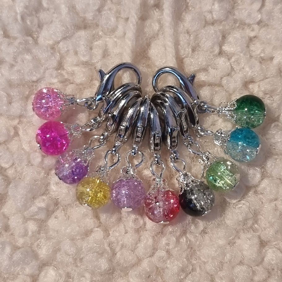 10 eriväristä silmukkamerkkiä pussissa