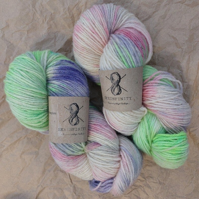 SKEINFINITYN käsin värjätty sukkalanka suomalaisesta lampaanvillasta.